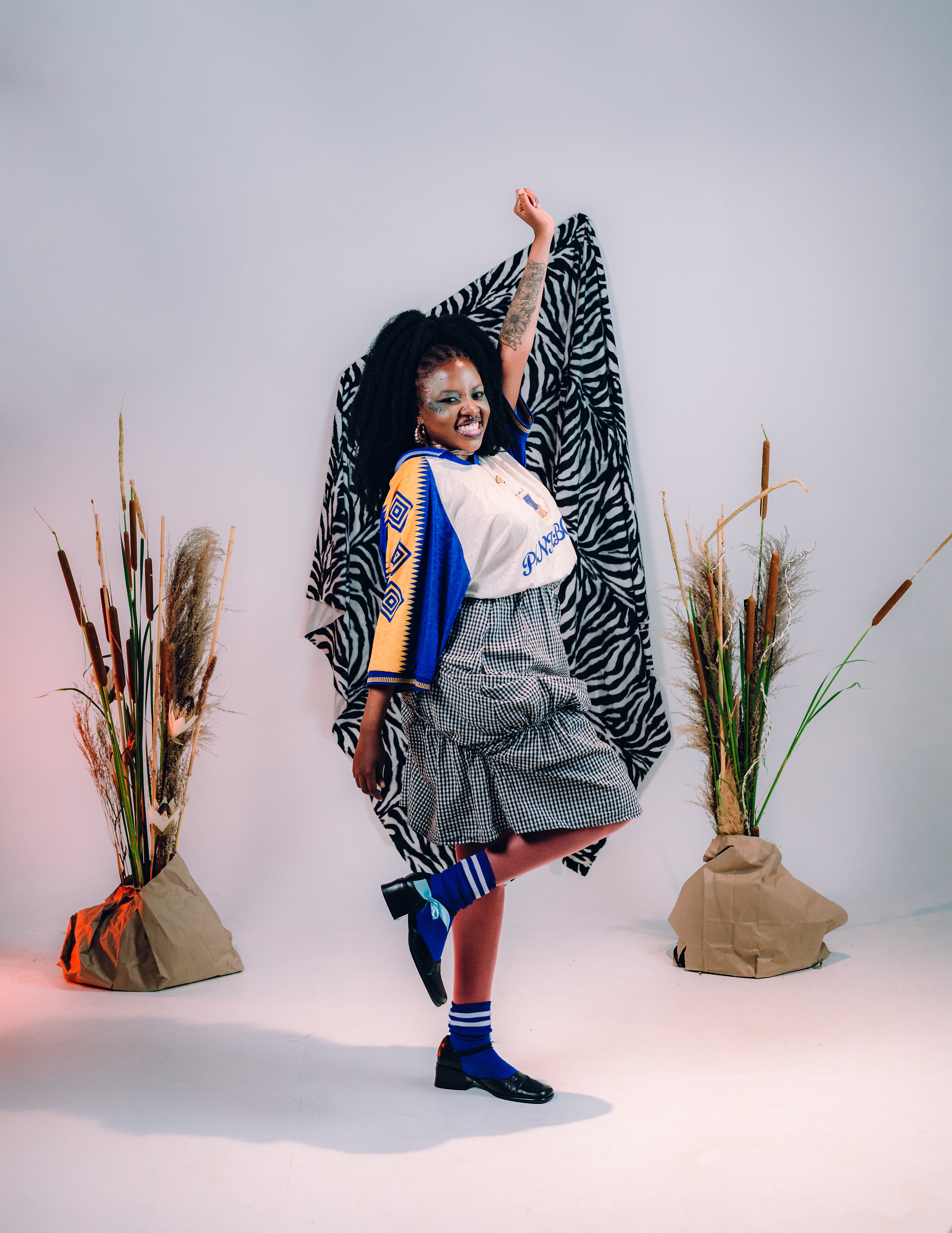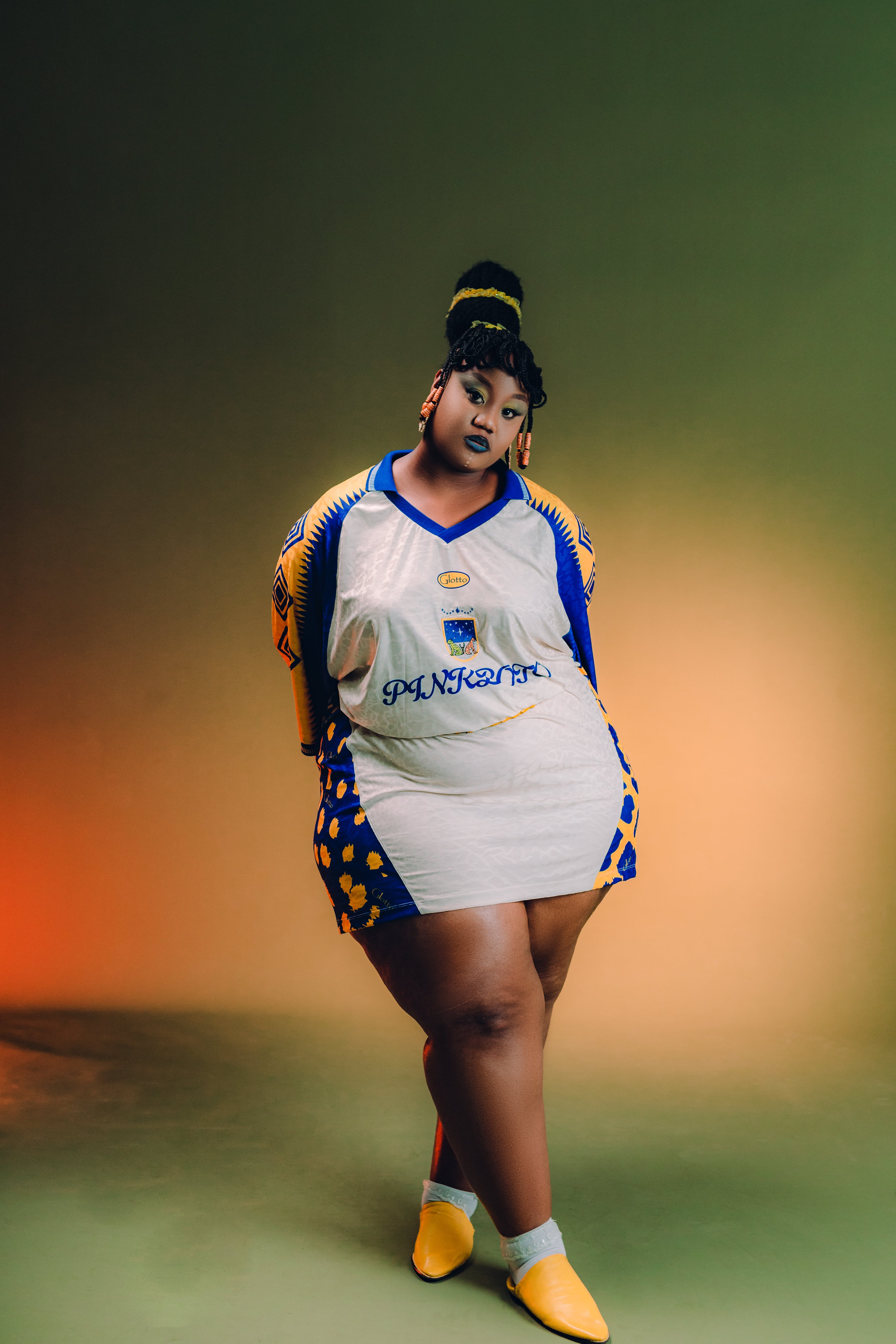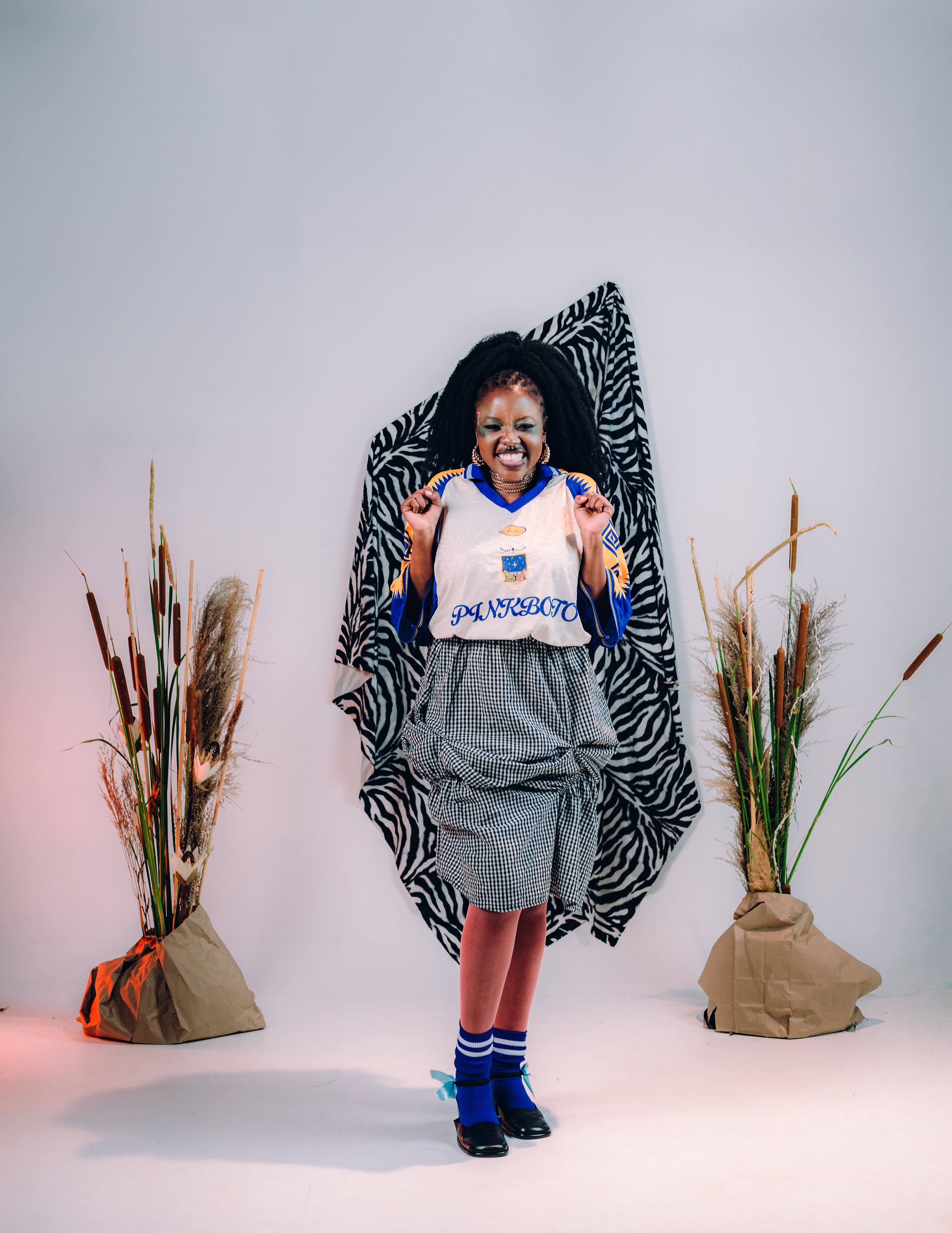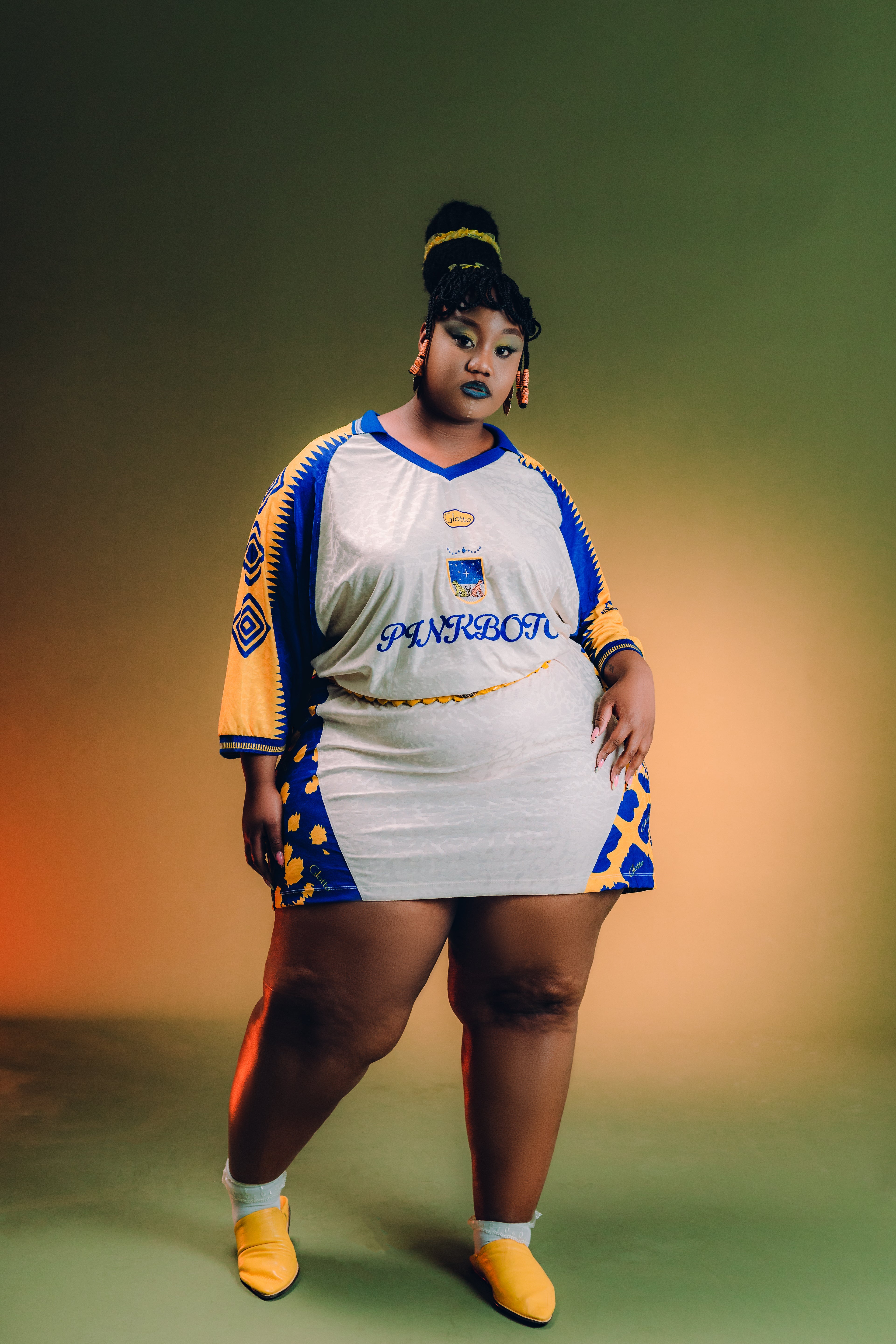 Crafted using Jacquard Infinity® fabric by Falcon Têxtil, the piece was designed in celebration of COP, honoring the climate conference’s global call for ecological balance and cultural preservation. The front features a bold “PINKBOTO” chest detail, while the sleeves and side panels burst with high-contrast marigold and deep blue patternwork, embedding Glotto’s silhouetted profiles as a signature motif. A final salute, the embroidered Botswana 🇧🇼 and Brazil 🇧🇷 flags at the collar, proudly declaring the cross-continental collaboration.